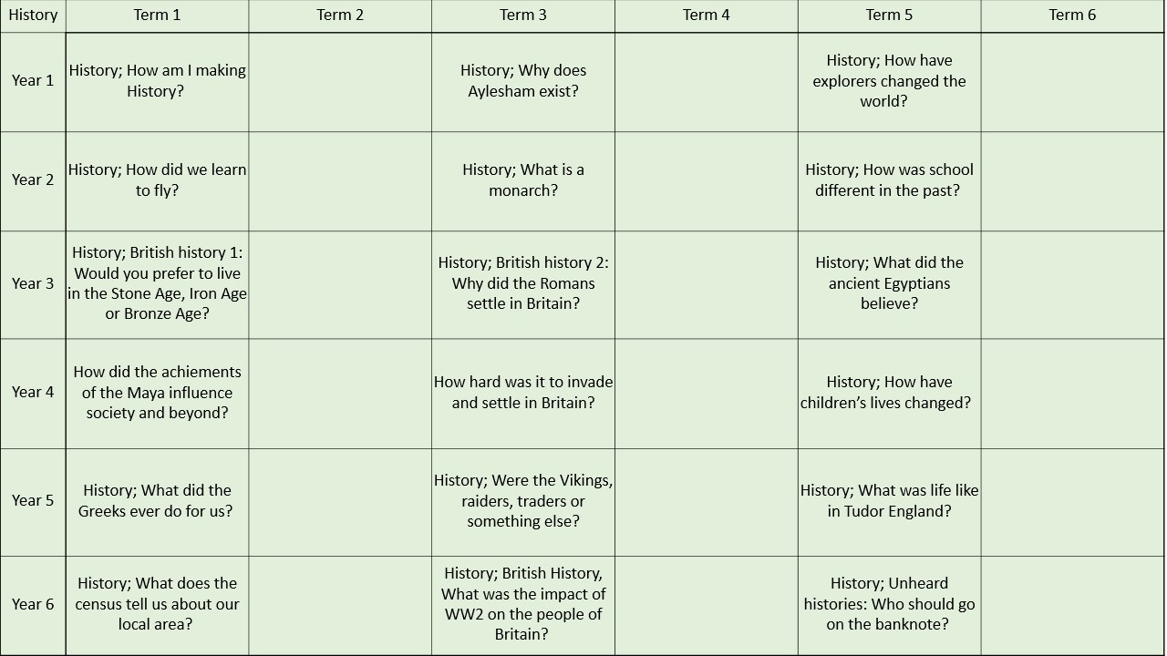 At Aylesham, we encourage all pupils to develop a deep curiosity about the history of the world around them, how events and people have shaped the way we live our lives and how history will shape our future. History helps children to understand the process of change, the diversity of societies as well as understanding their own identity and the challenges of our time.