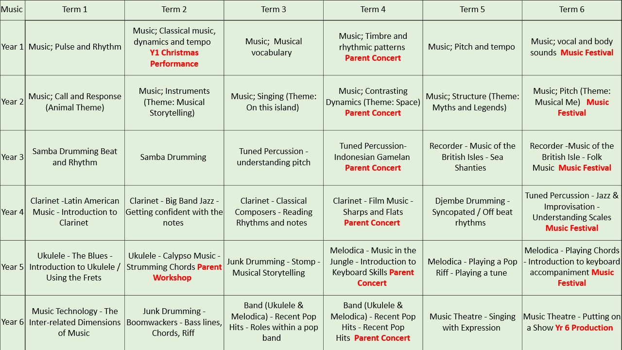- Key Stage 1: Music is taught using the Kapow Primary Scheme, which provides engaging lessons and builds strong foundations.