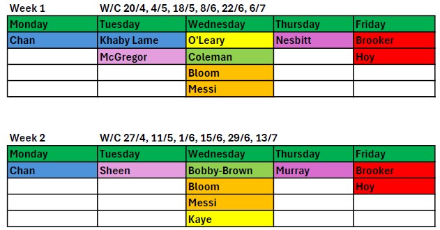 Friday – Year 1,3 & 6